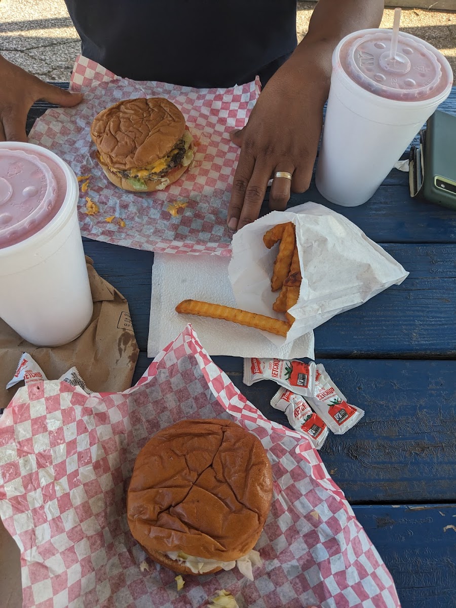The menu keeps things simple and satisfying, which is exactly what regulars appreciate. One of the highlights is the Double Meat and Cheese Bacon Burger, a hearty option stacked generously and cooked with care. It’s the kind of burger that delivers on flavor without trying too hard, making it a favorite in many local reviews. Cheese burgers are another go-to, especially when paired with crispy fries and a large cherry limeade that adds a refreshing, nostalgic touch to the meal.